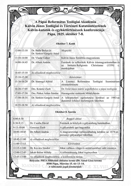 A Tatai Ref. Egyházmegye tanulmányi napokat szervez 2025. szeptember 28-29-én.