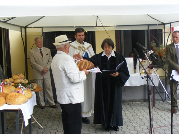 Szent Istvánra és nagy művére, az államalapításra, a kereszténység felvételére emlékezve, az újkenyér ünnepét tartották Esztergomban, Szentgyörgymező városrészén, az Olvasókörben, 2015. augusztus 20-án, délelőtt. A városrész Kertbarát Köre immár 48-dik alkalommal rendezte a városi ünnepséget.