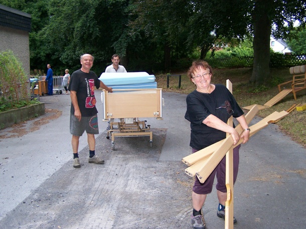 Hosszú évek óta kapcsolatban vagyunk az egykori ÁLDÁS - SEGEN program vezetőjével, Reinhard Fischbah testvérünkkel. Az Ő segítségével rendeztük be a korábban megépült létesítményeinket. Kértük, segítsen újból bútorok, ágyak beszerzésében. Hosszú ideig úgy tűnk nem jár sikerrel németországi keresgélése. Júliusban azonban megérkezett a jó hír, sikerült kapcsolatba lépni Észak - Rajna - Vesztfália Evangélikus Egyházzal. Itt találtak olyan épületeket amelyeket már bezártak és lebontásra ítéltettek. Az ilyen hely való nekünk, mert előzetes értesülések szerint itt minden olyan bútor rendelkezésre áll, ami nekünk kell. Köszönjük az ottani testvéreknek, hogy nem dobták ki, hanem lehetőséget kaptunk arra, hogy mindazt ami nekünk szükséges elhozzuk.