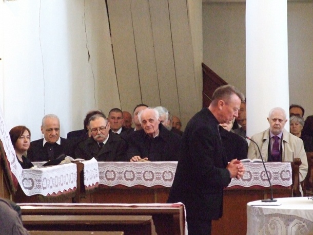 A pilismarótiak nevében Pergel István polgármester emlékezett, a gyülekezet nevében pedig Pintér Dávid presbiter. Nt. Zsoldos Gábor 1977-től, 28 éven át volt a gyülekezet lelkésze. Pásztori szolgálatára úgy emlékezünk, mint ami az épülés ideje volt - külső és belső tekintetben egyaránt. Mindig épített: új parókiát, új gyülekezeti házat... templomot újított, tervezett, szervezett, fáradhatatlanul szolgált. Mindeközben, ahogy az Ige mondja, ő maga is, mint élő kő, beépült a közösségbe és az épületekbe is: fizikai erejét sem tagadta meg, beállt a sorba, együtt dolgozott a gyülekezettel. Emberi és emberközeli volt, egy közülünk, aki mégis kiválasztott és elhívott. Isten Igéjét erős hangon hirdette, de nemcsak szóval, hanem egész életével Igét hirdetett. Életének minden idejét és erejét szolgálatra szánta.