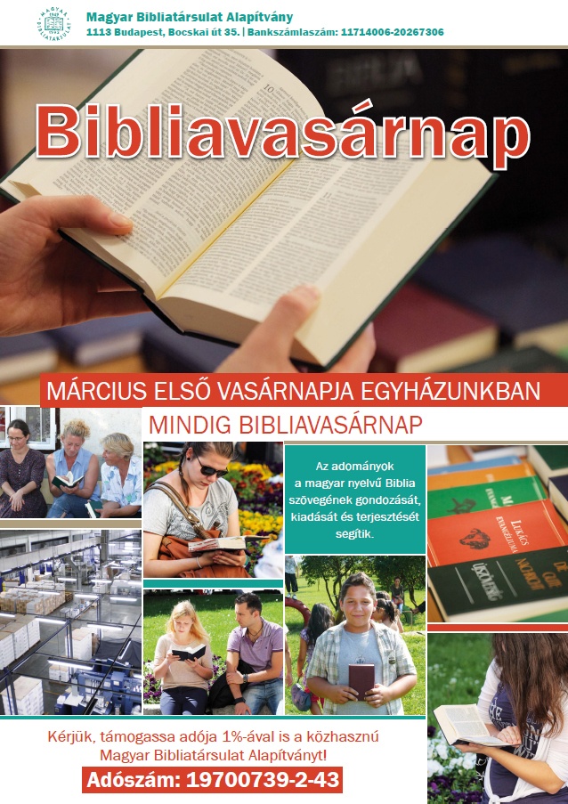 Az Egyházközségek a március 5-i istentisztelet perselypénzét ún. lekötött perselypénzként a Magyar Bibliatársulatnak küldik el.