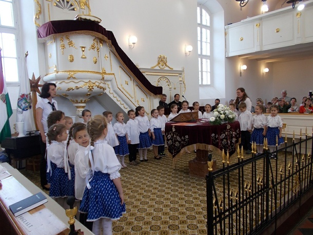 Az istentisztelet ünnepi része volt az is, amikor Papp László, a Hajnalcsillag Református Óvoda lelkipásztora palástosan és kézrátétellel minden végzős óvodás életére Isten áldását kérte.