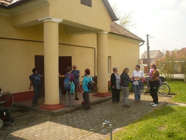 Az emléktúrán résztvevők fogadása a szőnyi gyülekezeti háznál