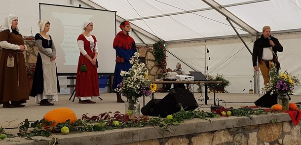 A vasárnap délelőtt folytatásaként, a kávé mellett a három testvértelepülés és Héreg egy-egy történelmi előadással mutatkozott be. A közös múltidézést a Magna Societas Falconis, a Sólyom Kompániája Hagyományőrző Csoport tette színesebbé, Mátyás-király korabeli ruhákban.