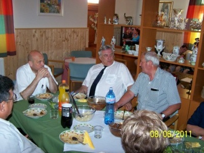 A lakóotthon dolgozói és lakói vacsorával várták a messzi útról érkezett és bizonyára elfáradt vezetőket. A kimondottan ízletesre sikerült pörköltöt - a küldöttség előzetes kérésének megfelelően - nyakkendő nélkül, kanállal fogyaszthatták el.